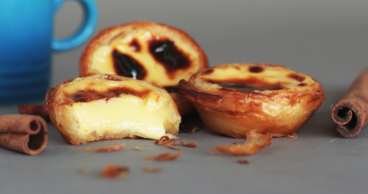 Portuguese custard tarts are iconic pastries featuring a crispy, flaky crust filled with a velvety custard center that's delicately caramelized on top, creating a perfect blend of textures and a delightful combination of sweetness and warmth.